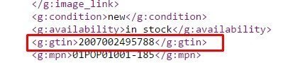 Aşağıda Feed’e GTIN’in nasıl ilave edildiği ve ürün listeleme reklamlarının detaylarında nasıl göründüğünü gösterelim;