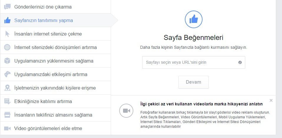 Bu başlık altında topladığımız başlıca reklam türleri Facebook, Instagram, Twitter ve Linkedin reklamları. En başında ise tahmin edebileceğiniz gibi facebook reklamları geliyor. Facebook reklam panelinden kolayca yönetilebilen bu reklamlar aynı google’da olduğu gibi farklılık göstermektedir. Reklam biçimlerinin ise aşağıda ekran görüntüsünü vereceğim.
