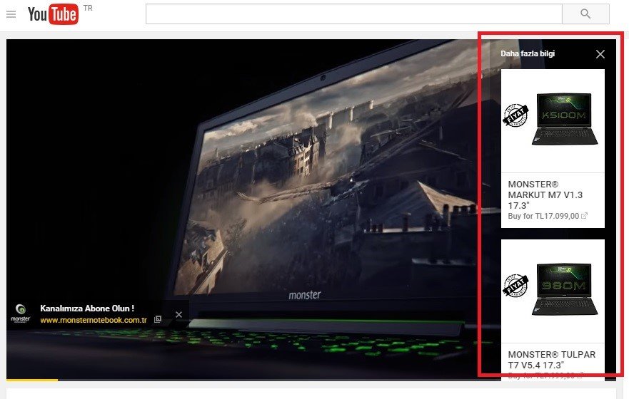 Truview for shopping’e gelecek olursak şuan çok yaygın olarak kullanılmasa da Youtube reklamlarının hemen sağında ürünlerimizi listelememizi sağlayan reklam biçimidir. Bunun için kullandığımız PLA reklamlarının feed’ini kampanya başlangıcında ekleyerek yayınlanan video reklamlarda ürünlerimizi listelememizi sağlar. Aşağıda video reklamlarda ki ürünleri gösteren Truview for shopping reklamlarının örneğini göstereceğim.