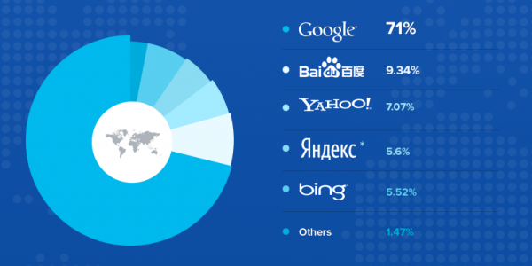Positionly‘nin yaptığı araştırma arama motorlarında Google’ın yüzde 71’lik bir hisseye sahip olduğunu gösteriyor. Google geçtiğimiz seneyi 60 milyar dolar ile tamamlarken bir evvelki seneye oran ile yüzde 19’luk bir sihrime sağladı. Bu gelişmede işletmenin yaptığı farklılıklar ve algoritma aktüellemeleri ehemmiyetli rol oynadı. Bu uygulamalar; Google Panda, Google Penguin ve Google Hummingbird