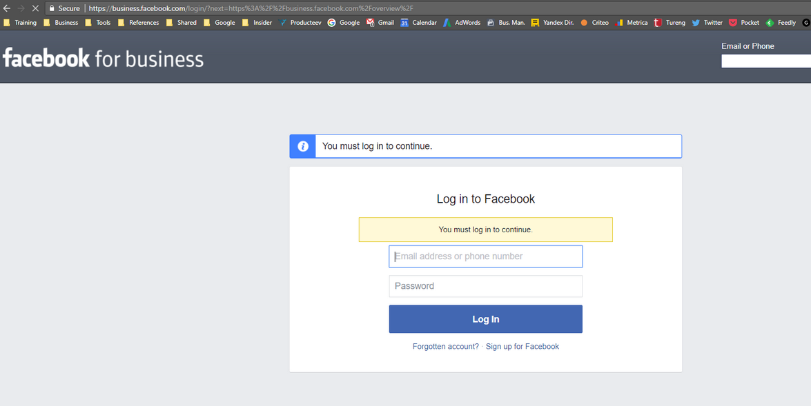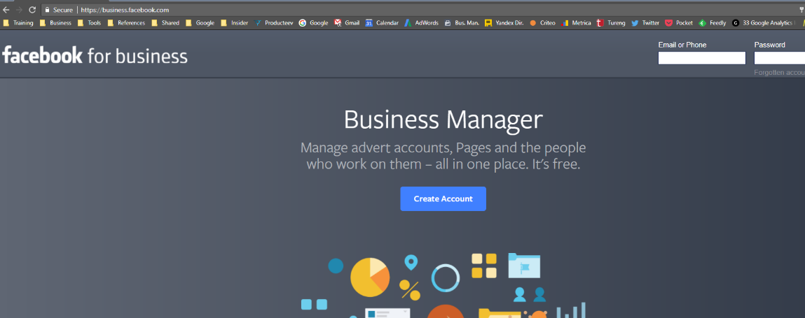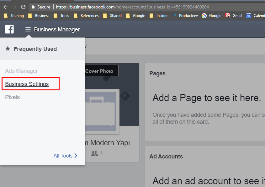 1. Öncelikle yeni gizli pencerede https://business.facebook.com/ adresine gidin.