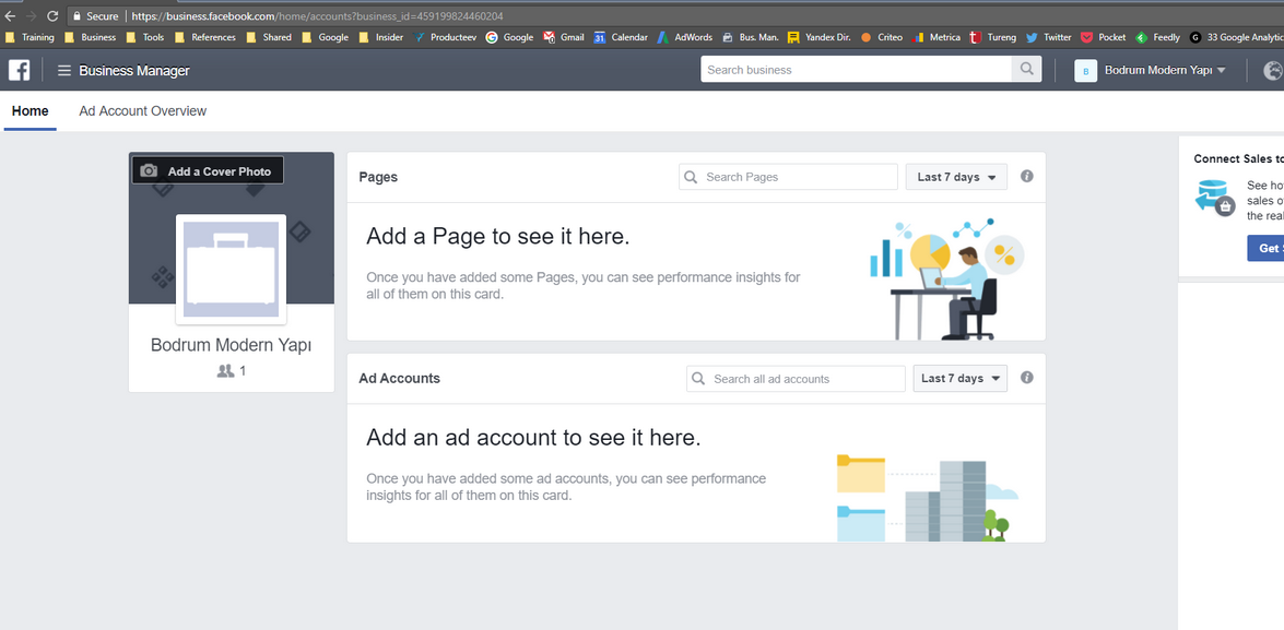 6. Bilgilerizi girdikten sonra karşınıza şu şekilde bir ekran gelecek. Bu Business Manager’ınızın ana sayfasıdır.