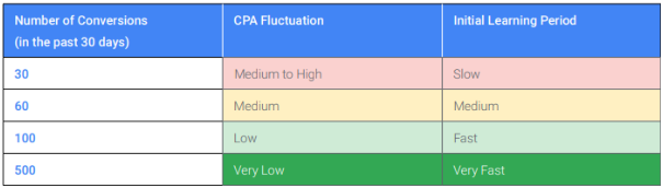 Görüldüğü üzere son 30 günde ne kadar çok dönüşüm gelirse CPA sapması o kadar azalmakta ve öğrenme süreci de bir o kadar hızlanmaktadır.