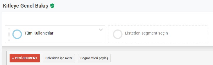 Analizleri yapılan görünümde hiç segment yoksa sıfırdan yeni segmentler tanımlanabildiği gibi, başka bir görünümde tanımlanmış olan segmentler “Galeriden İçe Aktar” butonu yardımıyla da görünüme eklenebilir ve kullanılabilir.