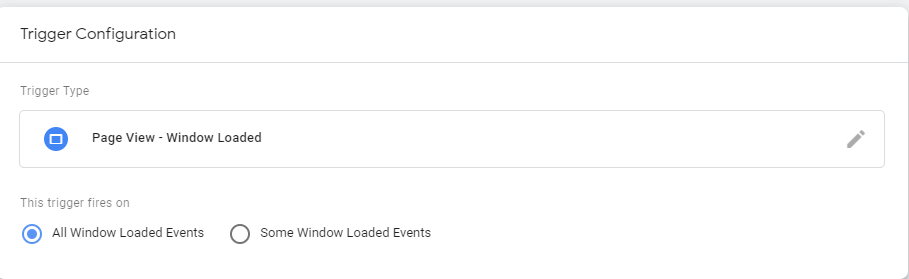 “Window Loaded” sayfa yüklenmesi bittiği an olarak tarif edilebilir. Bu tip triggerlar sayfanın yüklenmesi sonlandığı anda çalışarak tag’ini tetikler. Sayfa yüklenmeden etkileşime geçildiğinde çalışmasını istenmeyen tag’ler için kullanılması önerilmez.