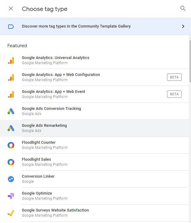 Öncelikle GTM üzerinden yeni bir tag oluşturulur. Oluşturulan bu tag “Google Ads Remarketing” tipinde olmalıdır.