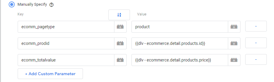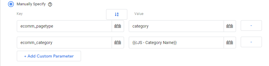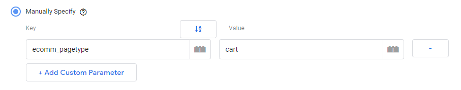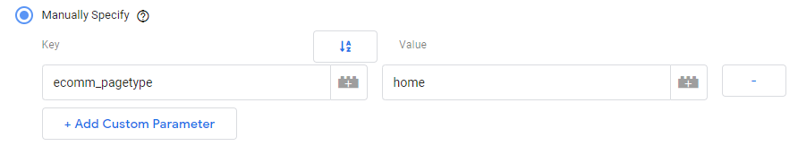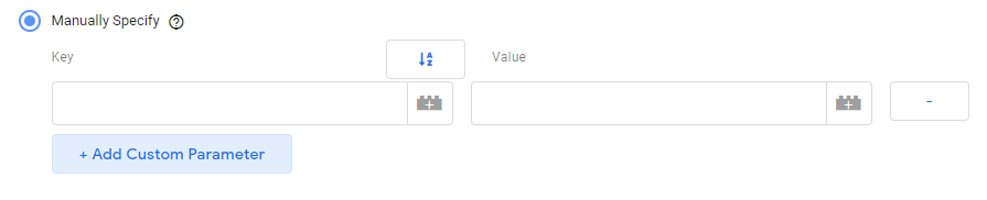 Bu pencerede önemli olan nokta ise “Custom Parameters” kısmıdır. Default olarak “None” seçeneğiyle sunulan bu kısımda “Manually Specify” seçeneği seçilerek aşağı doğru bir listenin açılması sağlanmalıdır. Açılan liste “Key” ve “Value” olmak üzere iki parametre barındırmaktadır. Bu parametreler sayfadan almak istenilen verilerin ve bu verilerin değerlerinin alınmasını sağlamaktadır.