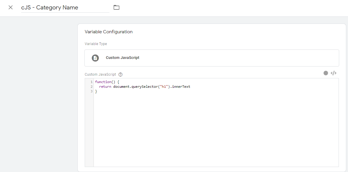 Yukarıda sayfanın başlığının alındığı basit bir “Custom Javascript” örneği gösterilmektedir. Alınan başlık tagin “Custom Parameters” kısmında “ecomm_category” anahtar kelimesinin değeri olarak “Value” sütununa eklenmelidir.