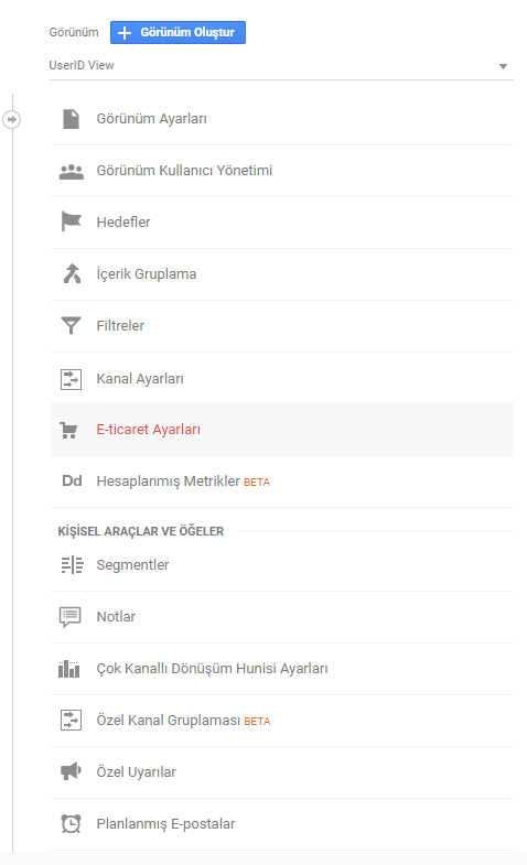 - User ID görünümü e-ticaret ayarlarının yapılması