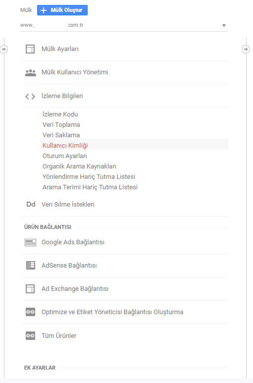 User ID kurulumunun ilk adımı, analizleri yapılan web sitesinin bağlı olduğu mülkte User ID ayarının açılması ve görünümünün oluşturulmasıdır.