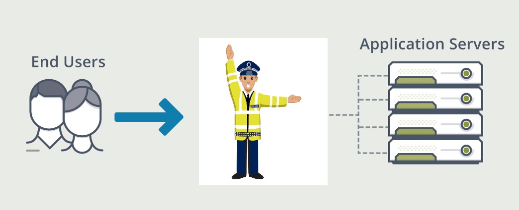 Load balancer, heryerde benzetildiği gibi yoğun trafiği yöneten bir trafik polisi gibi düşünülebilir. devamlı akıcı trafikli bir yolun ayrım noktasındaki bir trafik polisi gibi gelen trafik unsurunu aynı hedefe çıkan farklı yollara yönlendirerek yollardaki trafik yoğunluğunu azaltır. Azalan trafik yoğunluğuyla beraber trafik akışı hızlanır ve daha verimli hale gelir.