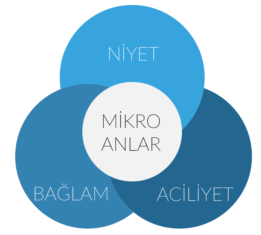 Mikro anlar o an aklınıza gelen veya fırsat bulduğunuzda (genelde mobil) cihazınıza sarıldığınız ve merakınızı veya ihtiyacınızı tam da o an dindirmeye çalıştığınız anlar. O yüzden bu anlarda kişiler tam o an, belli bir konuda bir şey yapma niyetini gösteriyor. Yani mikro anlar bir şeye niyetin, o şeyin bağlamının ve bulunulan mekânın mecbur bıraktığı aciliyetin kesişimiyle oluşuyor. Bu zaman dilimindeki kişilerin dört farklı ana kategoriye giren farklı amaçları olabiliyor. O an bir şey öğrenmek isteyebilirler, o an bir yere gitmek isteyebilirler, o an bir şey almak isteyebilirler veya o an bir şey yapmak isteyebilirler. İşte bu anlar tam da markaların tesirine açık olduğumuz zamanlar. Çünkü araştırmaya göre akıllı telefon kullanıcıları olarak %65’imizin bir arama yaparken en çok dikkat ettiği şey sunulan bilginin bizimle olan alakası, hem de bilgiyi sunan firmanın önemi olmaksızın.[1]
