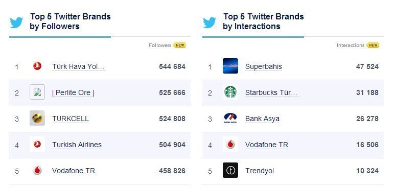 Twitter da takipçi sıralamasında ilk sırayı Türk Hava Yolları alıyor. En çok etkileşimde bulunan hesap ise Superbahis.